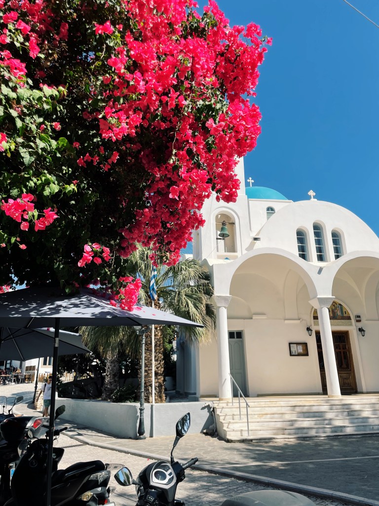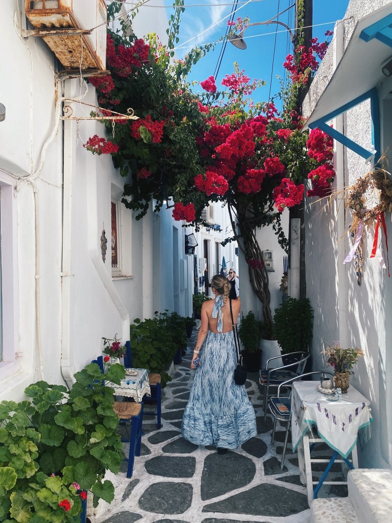 I loved this island so much. It has the white sand textured buildings with blue roofs accented with pink florals that has become the curated postcard when someone says Greece. This experience also had gorgeous beaches, same excursions offered, and going out scenes. I really feel like Paros offers a good combination of things when selecting which island to visit.