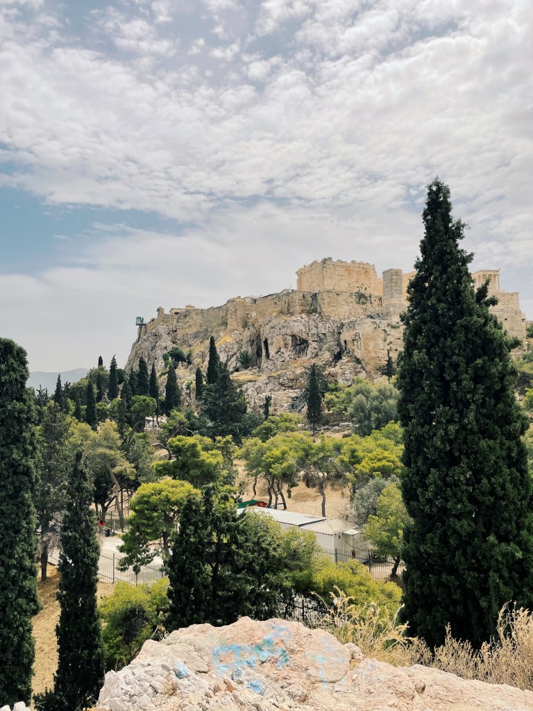To be honest, our Athens experience was sub-par, but this was due to a couple external factors. First of all, if you want to visit Greece in the summer months expect to SWEAT. Which everyone discourages due to LOTS of crowds and high prices, but if that is the only option (I see you collegiate kings & queens, teachers, fams), don’t worry beaches are all around you. When we visited, the temperature was a HOT consistent high 80 and 90 degrees Fahrenheit (30 degrees Celsius). Athens, an enclosed city with cobblestone walking paths surrounded by ancient ruins, the temperature in June was a record breaking 105 degrees Fahrenheit (40 degrees Celsius). It was so hot with little to no air flow or easily accessible A/C. The Parthenon and Acropolis were actually closed the day we were there because it was TOO HOT. All that being said, we are not quitters (!) and did still trek to them and found a nearby cliff to climb up to get a view. Truthfully, this satisfied me and I don’t think I missed too much. I could see what I wanted from that trusty nearby cliff. We did visit the Acropolis museum (with air-conditioning :-)) and were able to see a lot of artifacts from the Parthenon and Acropolis. So again, I don’t think I missed out on much. After roughing it in mr hot sun for most of the day, yes we did collapse with no clothes on in our airbnb. Hello day oneeee.